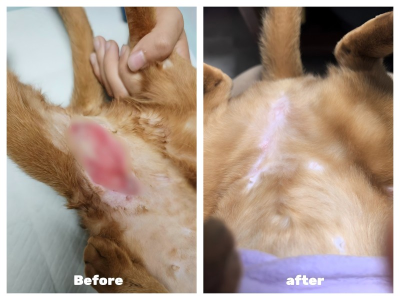 ຄະດີການປິ່ນປົວນີ້ສະແດງໃຫ້ເຫັນປະສິດທິພາບອັນລ້ໍາຄ່າຂອງVetmedix StarSinary Laserການປິ່ນປົວການຟື້ນຟູໃນການຮັກສາຕ່ອມ mammary rupture. ຫຼັງຈາກແປດການຮັກສາການຟື້ນຟູເລຂາເລເຊີ, ບາດແຜຂອງສັດລ້ຽງທີ່ເຈັບປ່ວຍໄດ້ຮັບການປັບປຸງຢ່າງຫຼວງຫຼາຍ, ສະແດງໃຫ້ເຫັນແນວໂນ້ມການຮັກສາທີ່ດີ, ແລະເນື້ອເຍື່ອອື່ນໆໄດ້ເຕີບໃຫຍ່ຂື້ນຢ່າງໄວວາ. ບໍ່ມີປະຕິກິລິຍາທີ່ຫຍຸ້ງຍາກເກີດຂື້ນໃນລະຫວ່າງຂັ້ນຕອນການປິ່ນປົວທັງຫມົດ. ການປິ່ນປົວນີ້ໄດ້ເຮັດໃຫ້ເວລາຟື້ນຟູຢ່າງຫຼວງຫຼາຍແລະໄດ້ຫຼຸດຜ່ອນຄວາມເຈັບປວດຂອງສັດລ້ຽງທີ່ເຈັບປ່ວຍ.